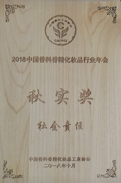 名臣健康用品股份有限公司以其在品牌建設、研發創新、質量管理、扎實的企業管理、良好的經營業績,以及在回饋社會,關愛民生,善盡企業社會責任等方面所做的不懈努力和取得的成效,在本次年會上獲得“中國香料香精化妝品行業優秀企業獎”和“社會責任獎”二大獎項。