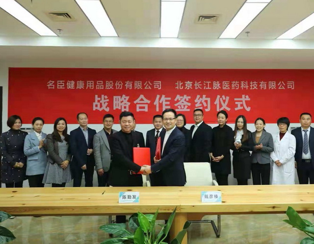經(jīng)過(guò)一段時(shí)間的持續(xù)接觸及深度溝通、研討,名臣健康用品股份有限公司(以下簡(jiǎn)稱名臣健康)與北京長(zhǎng)江脈醫(yī)藥科技有限責(zé)任公司(以下簡(jiǎn)稱長(zhǎng)江脈)簽署了《戰(zhàn)略合作框架協(xié)議》。雙方于20181025日在北京長(zhǎng)江脈公司總部舉行了簡(jiǎn)單而隆重的簽約儀式。