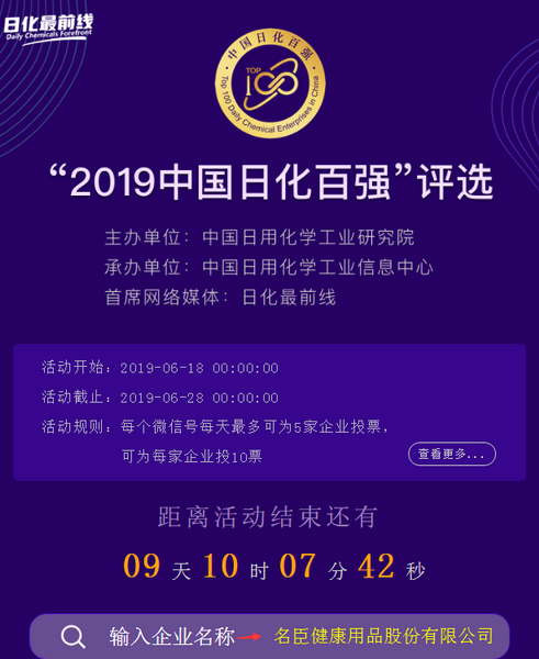 敬請關注和支持名臣健康——參與“中國日化百強”評選活動