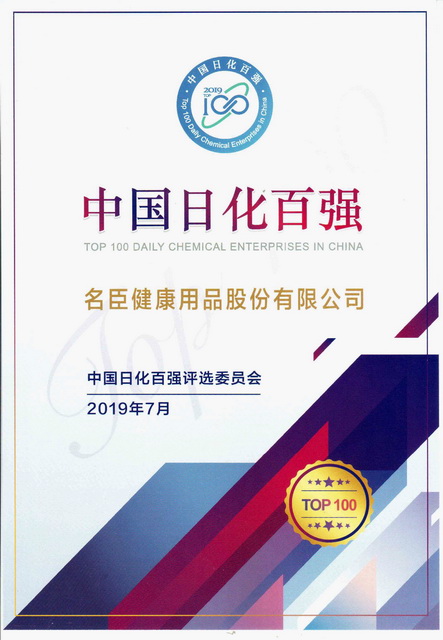 2019年是新中國成立70周年。建國以來,尤其是改革開放40年來,中國日化行業(yè)走過了從無到有、從小到大的發(fā)展歷程,取得了舉世矚目的輝煌成就。為彰顯新中國成立70年中國日化行業(yè)的非凡業(yè)績,中國日用化學(xué)工業(yè)研究院首次在中國日化全行業(yè)推出了“中國日化百強(qiáng)”評選活動,并于7月16日在廣州舉行“中國日化百強(qiáng)”頒獎儀式。名臣健康用品股份有限公司作為行業(yè)上市企業(yè)、國家高新技術(shù)企業(yè),憑借其持續(xù)提升的企業(yè)研發(fā)創(chuàng)新能力、卓越的產(chǎn)品品質(zhì)、品牌知名度和美譽(yù)度、企業(yè)綜合實(shí)力和行業(yè)影響力,榮膺2019“中國日化百強(qiáng)”企業(yè)。
