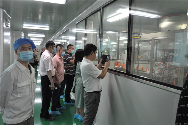 與會(huì)嘉賓實(shí)地參觀名臣健康GMP生產(chǎn)車間自動(dòng)生產(chǎn)線