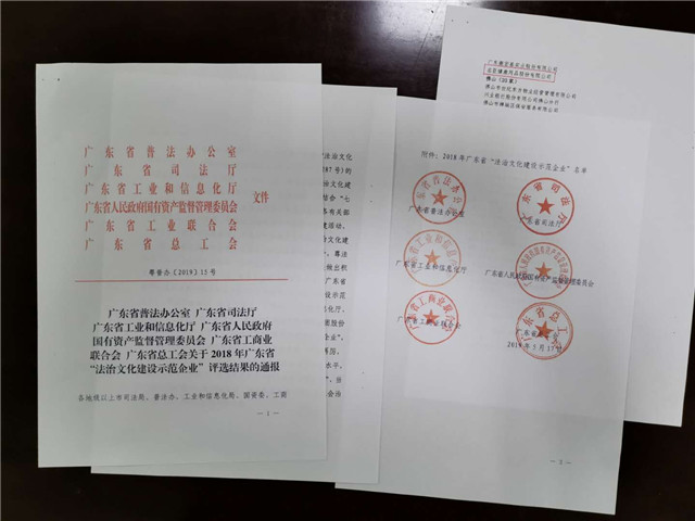公司在業(yè)務(wù)不斷發(fā)展的同時(shí),大力推進(jìn)企業(yè)法治文化建設(shè),積極開展法治文化建設(shè)示范企業(yè)創(chuàng)建活動(dòng),深入開展法治宣傳教育,依法治企能力得到明顯提升,遵法、學(xué)法、守法、用法氛圍日漸濃厚,為當(dāng)?shù)厣鐣?huì)穩(wěn)定和經(jīng)濟(jì)發(fā)展發(fā)揮了帶頭示范作用。前不久,名臣健康獲廣東省普法辦公室、省司法廳、省工業(yè)和信息化廳、省政府國(guó)有資產(chǎn)監(jiān)督管理委員會(huì)、省工商聯(lián)、省總工會(huì)等六部門聯(lián)合授予“廣東省法治文化建設(shè)示范企業(yè)”榮譽(yù)。