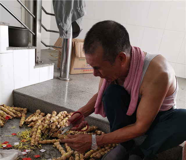 據(jù)老黃在食堂煮涼茶現(xiàn)場介紹,煮解暑茶的清熱解暑藥材包括竹殼茶、羅漢果、青蓮葉、鴨舌鴻等,這些藥材均有清熱解毒、去暑的功效。