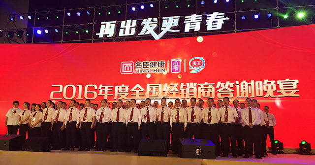 如夢如幻的3D開場秀緩緩拉開了年會答謝晚宴的序幕,現(xiàn)場美輪美奐。流行時尚的搖滾串燒、讓人驚呼神奇的魔術(shù)表演,一系列精彩節(jié)目讓在座的經(jīng)銷商連番喝彩。銷售一部全體成員大合唱名臣健康企業(yè)之歌《青春派對》更將晚宴推向高潮,名臣健康蒂花之秀新品上市暨2016全國經(jīng)銷商年會取得圓滿成功!
