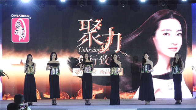 本次柔順新品上市主打柔順香氛洗發乳及深度滋養發膜?,F場走秀模特展示的26款產品包括洗發乳、養發乳霜、發膜、面膜及洗衣片,充分展示名臣蒂花之秀要做好日化用品的決心和誠意。