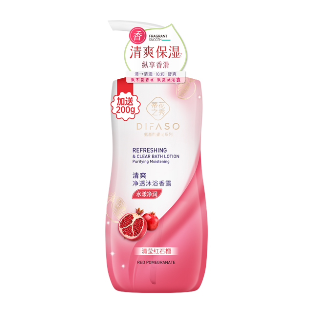 排濁煥膚:氨基酸表活綿密泡沫,浸潤每一寸皮膚,特別添加紅石榴精粹,溫和清潔不假滑,清爽舒澈不拔干,讓皮膚甜嫩煥亮。